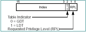 - 高 13 位为表内索引号 —— 但注意由于 GDT 第一项留空,所以索引要先加 1;
