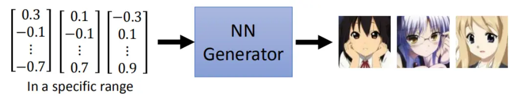 上图是生成模型的一种基本模式,我们希望输入一个向量得到一个目标输出作为图形。