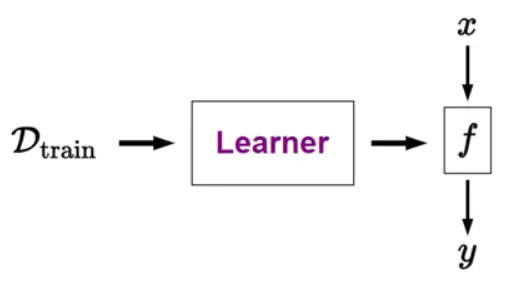 因此机器学习实际上就是给定一个训练数据集,产生一个预测函数。这个预测函数能对输入的 x 给出期望的 y,简单的可以表示为这样: