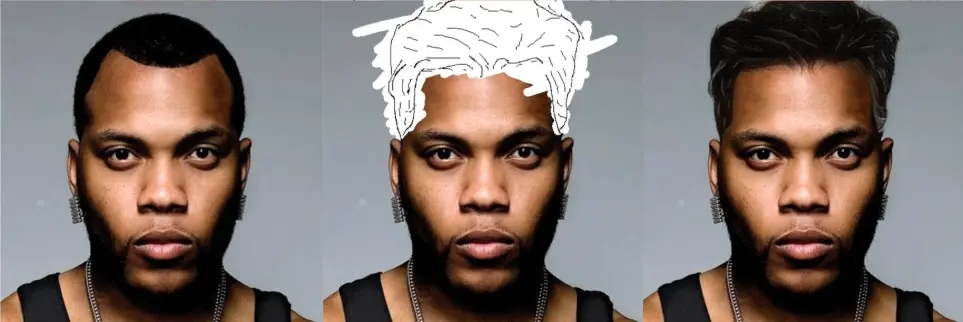 又比如说,我们可以从图片中修改一部分区域,画出一个简单的草图,它就自动帮我们生成更加真实的修改内容。