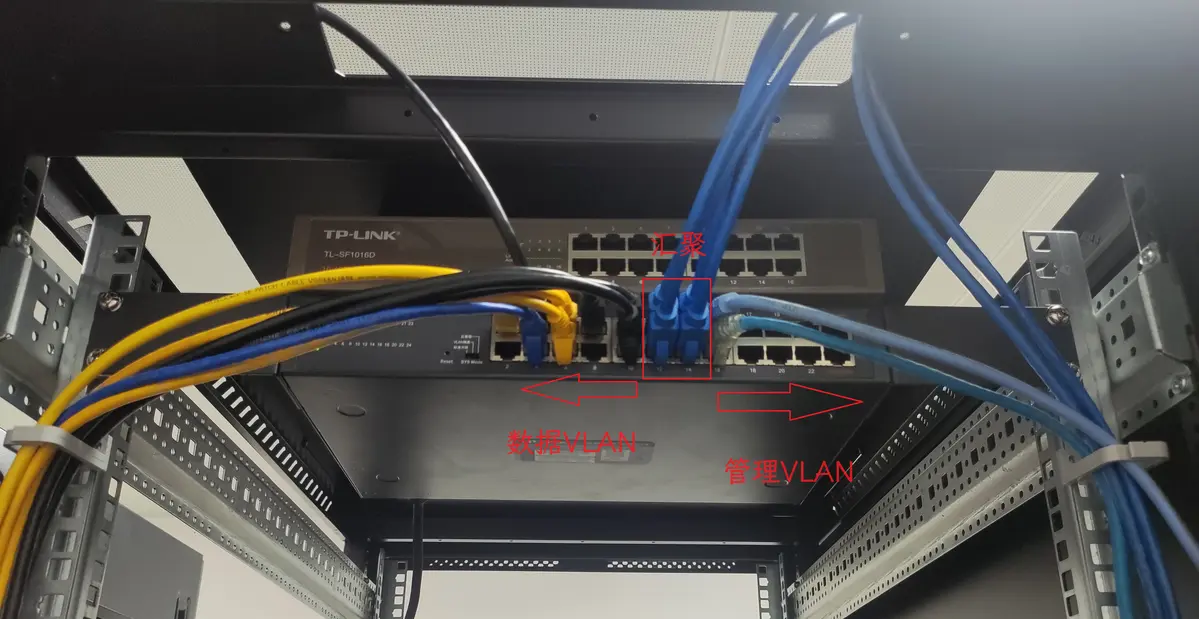 从最顶上的交换机开始,左侧是数据网络,右侧是管理网络。