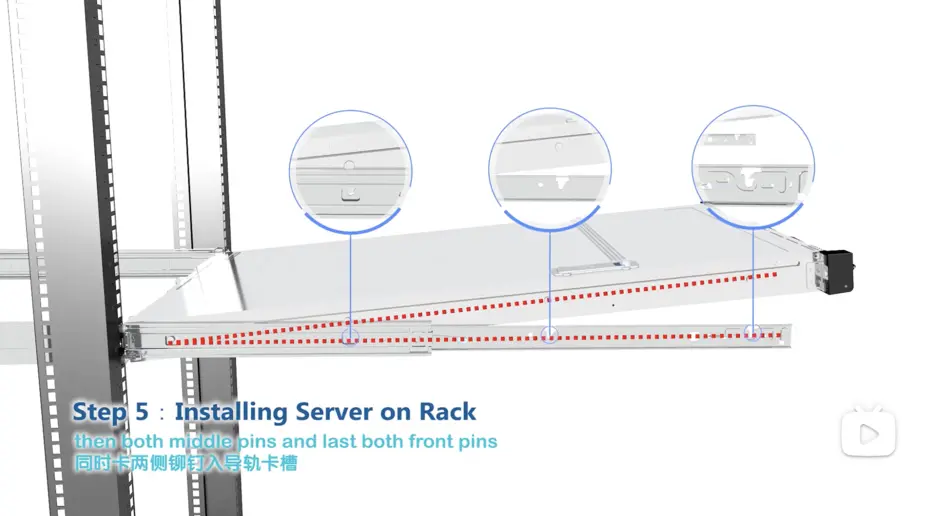 - 记得固定好导轨与服务器、导轨与机架的螺丝(如果有),避免抽拉时导轨脱架。