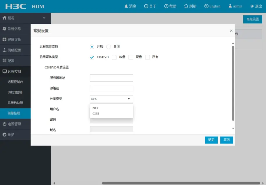 新华三带外管理镜像挂载选项卡 远程挂载镜像推荐挂载小镜像